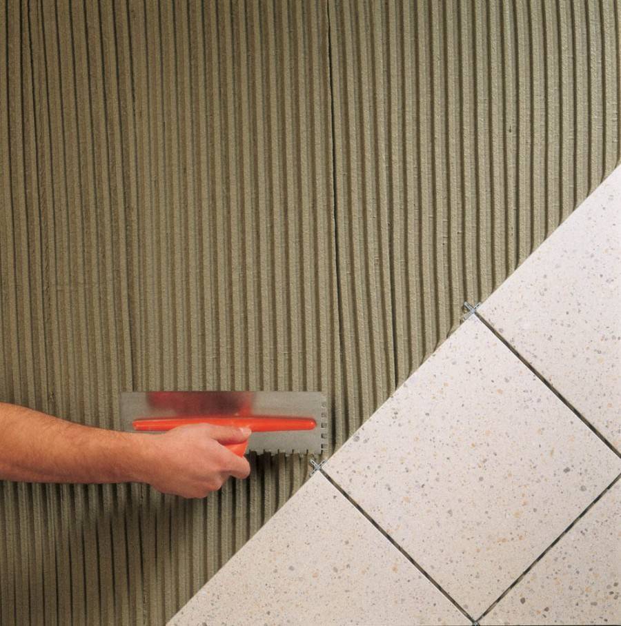 Новую плитку возможно укладывать на старую, также подходит для облицовки необработанной поверхности. Хорошо заполняет трещины и неровности.