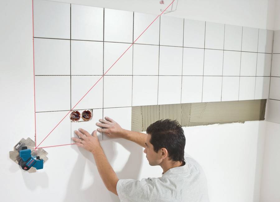 Еще удобнее пользоваться лазерным уровнем в качестве разметочных линий. В таком случае Вам не придется беспокоиться о том, чтобы клей не попадал на разметочные линии.