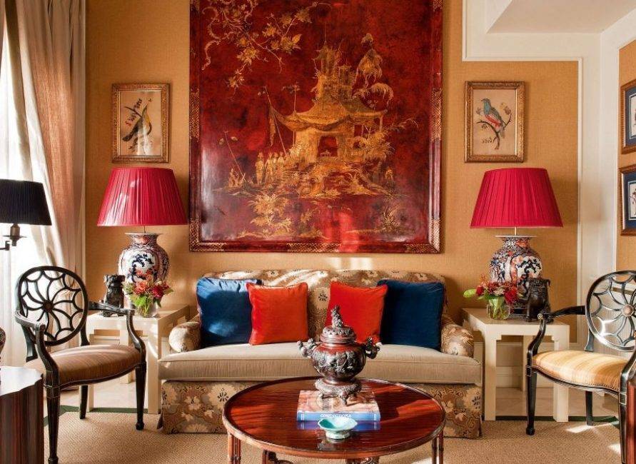 Конечно же, подобный дизайн был бы невозможен без влияния Востока. Здесь приветствуются этномотивы – маски шаманов, статуэтки, пестрые африканские дорожки или дорогие индийские ковры ручной работы.