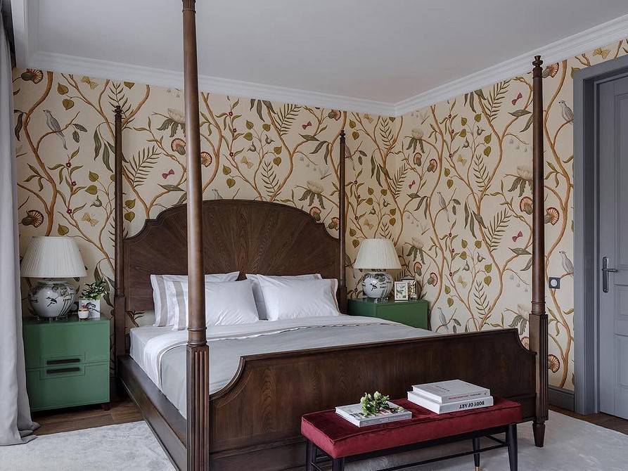 Узоры, принты, рисунки на обоях подбираются в унисон к интерьерному стилю и вкусовым предпочтениям.