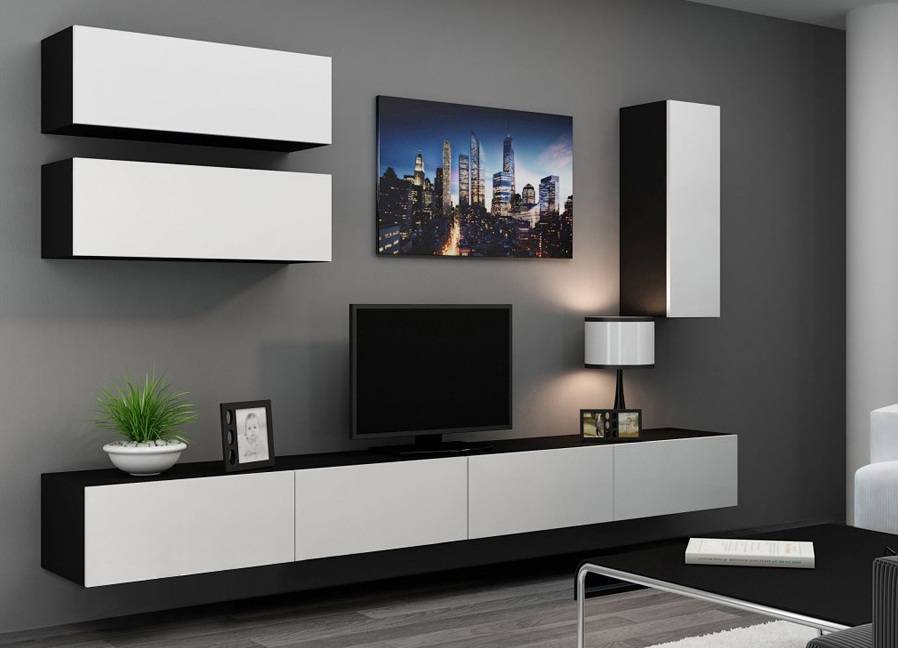 Для обустройства жилых комнат, имеющих небольшие размеры, дизайнеры рекомендуют использовать подвесные модели. Вместительная декоративная полка украсит всю стену, а не только участок под телевизионной панелью. Уникальные навесные конструкции визуально расширяют жилое пространство, создают в интерьере атмосферу легкости и простора.