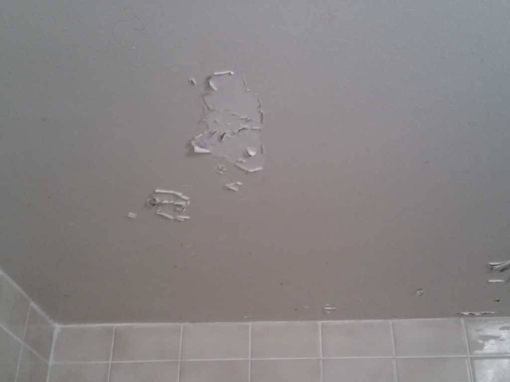 - Следующий шаг — создание в помещении сквозняка. Раскройте все окна и двери, и на поверхности потолка образуются вздутия. Такой размокший слой старого покрытия Вы легко снимите шпателем.