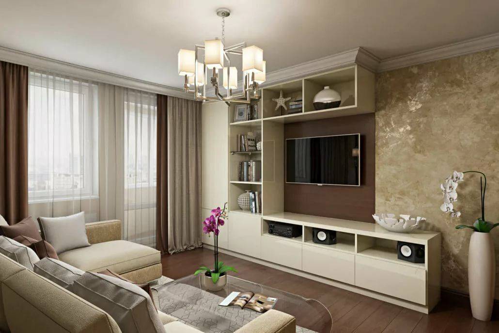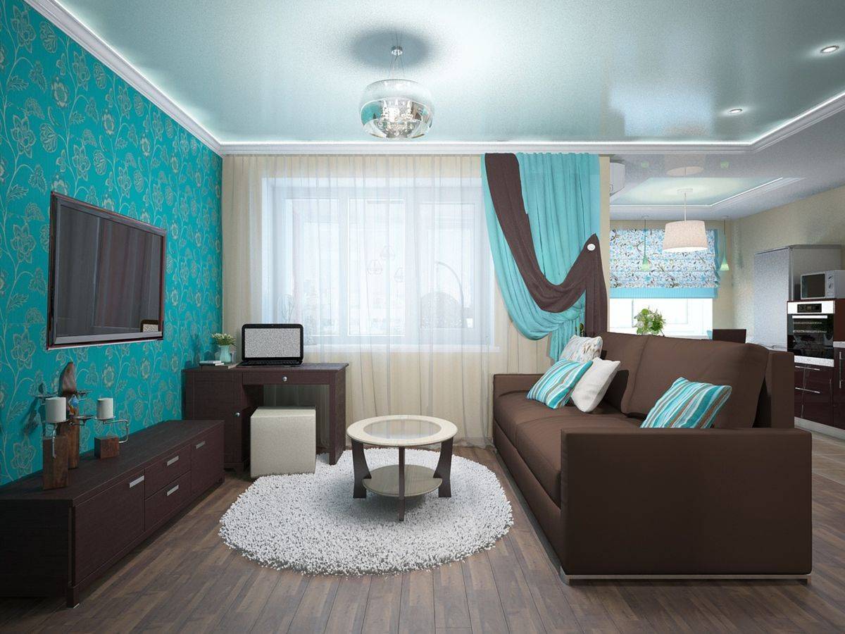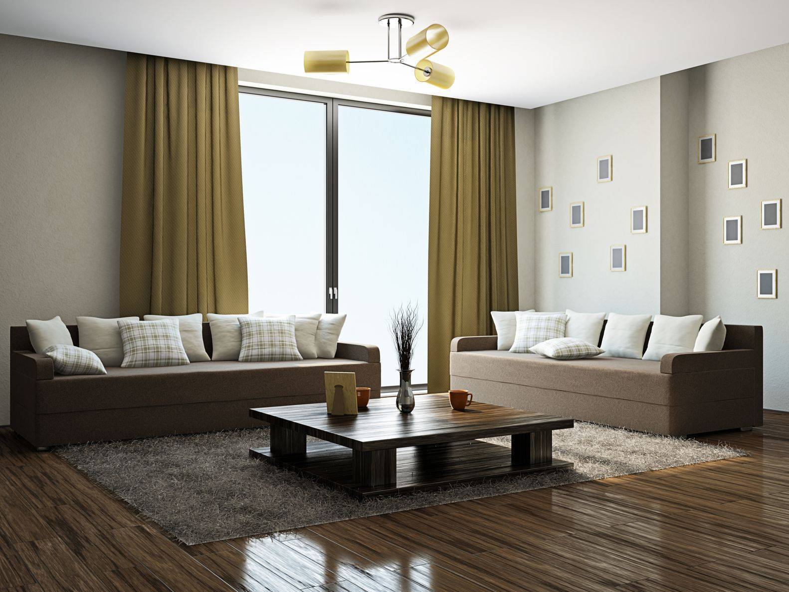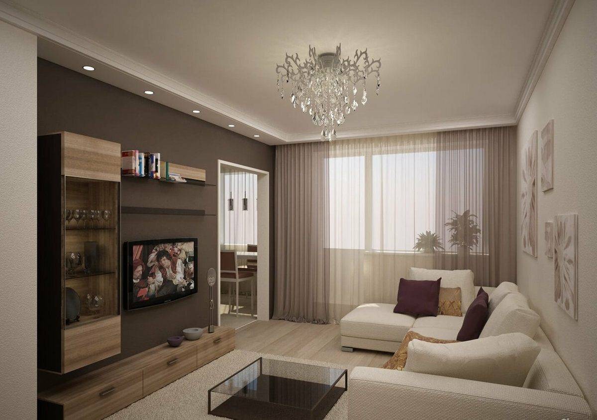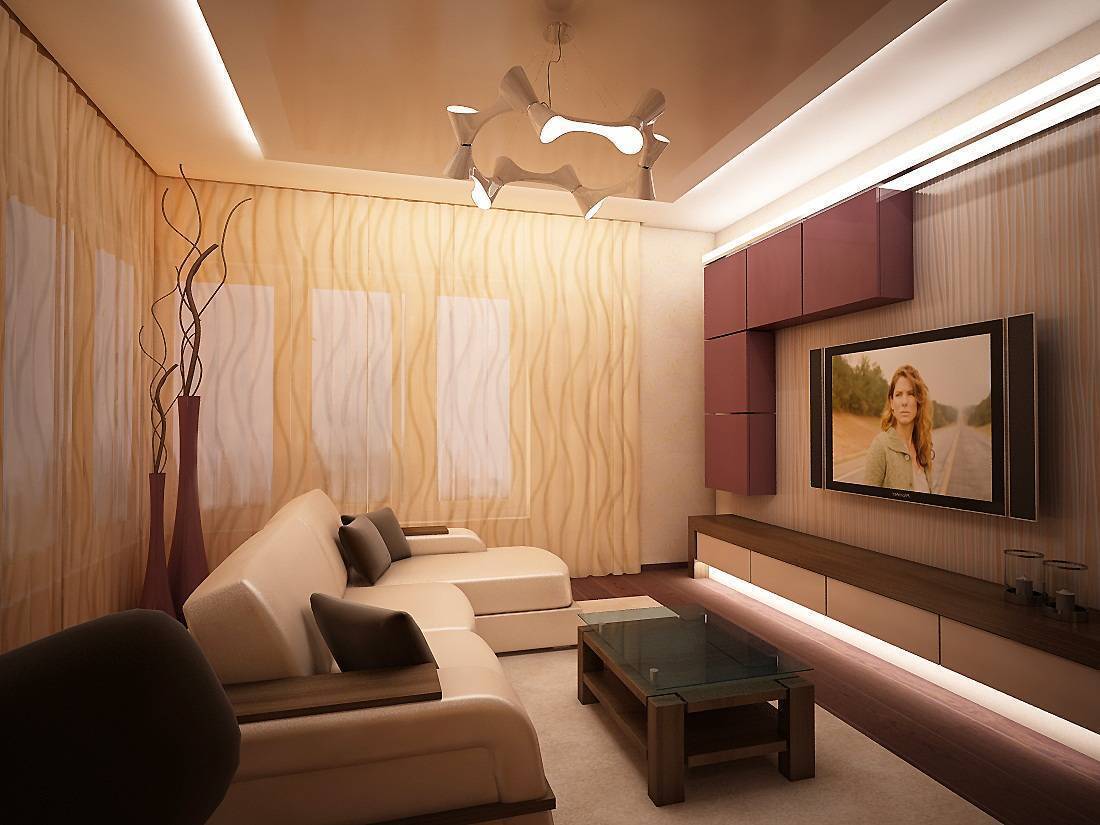Интерьер гостиных с небольшими размерами не приветствует шторы на окнах тёмных или коричневых оттенков. Лучшим вариантом для таких помещений будут занавески светлого тона с золотистыми или бронзовыми бликами. Шторы коричневых оттенков предпочтительно используют в просторных гостиных.