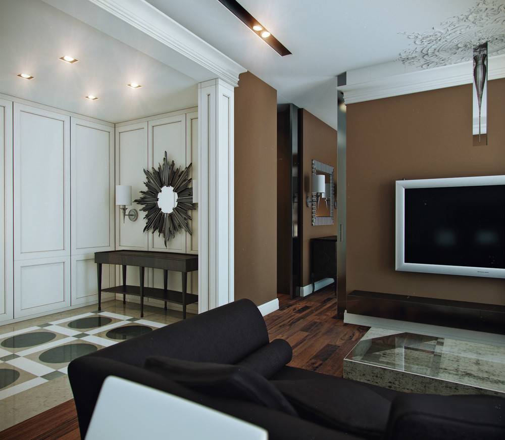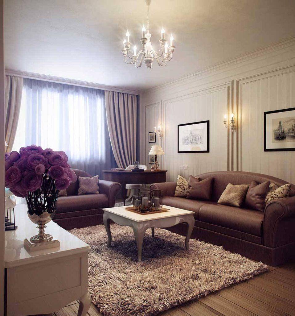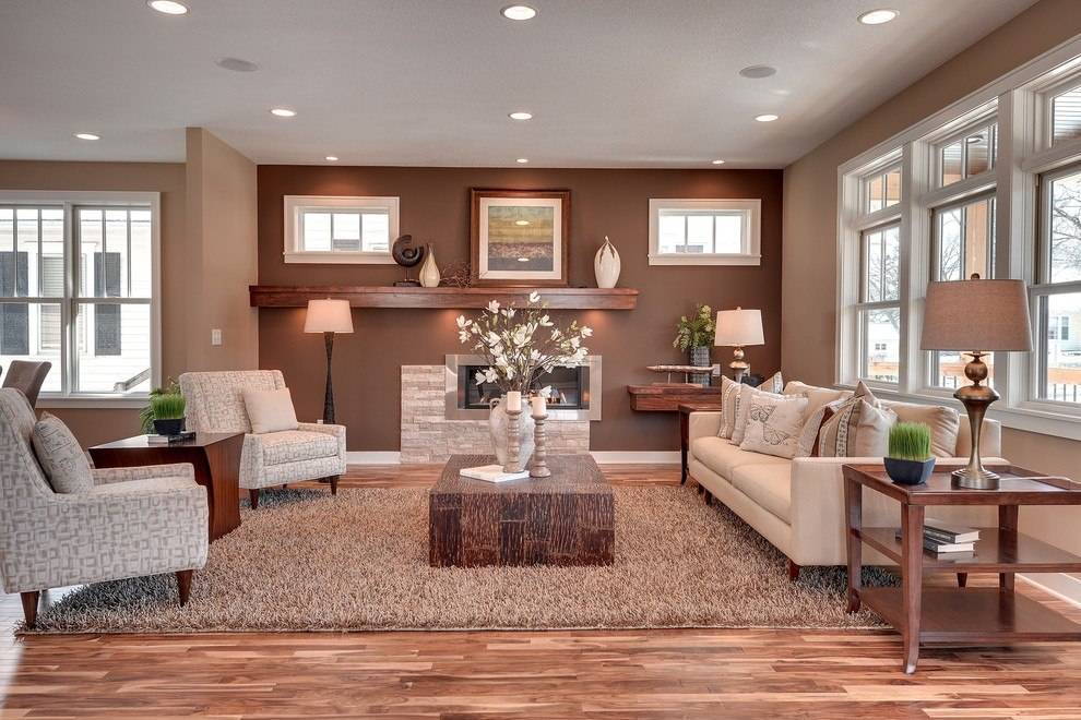 При составлении цветовой палитры в расположении гостиной вам необходимо знать, что коричневый цвет хорошо сочетается с пастелью и оттенками бежевого. Коричневый в комбинации с белым создает совершенный дуэт, который добавляет характер в интерьер. Бежевый в комбинации с бронзой согреют комнату, поэтому гостиная приобретет уютную атмосферу. В элегантной гостиной коричневый цвет также хорошо гармонирует с деталями из золота и серебра.