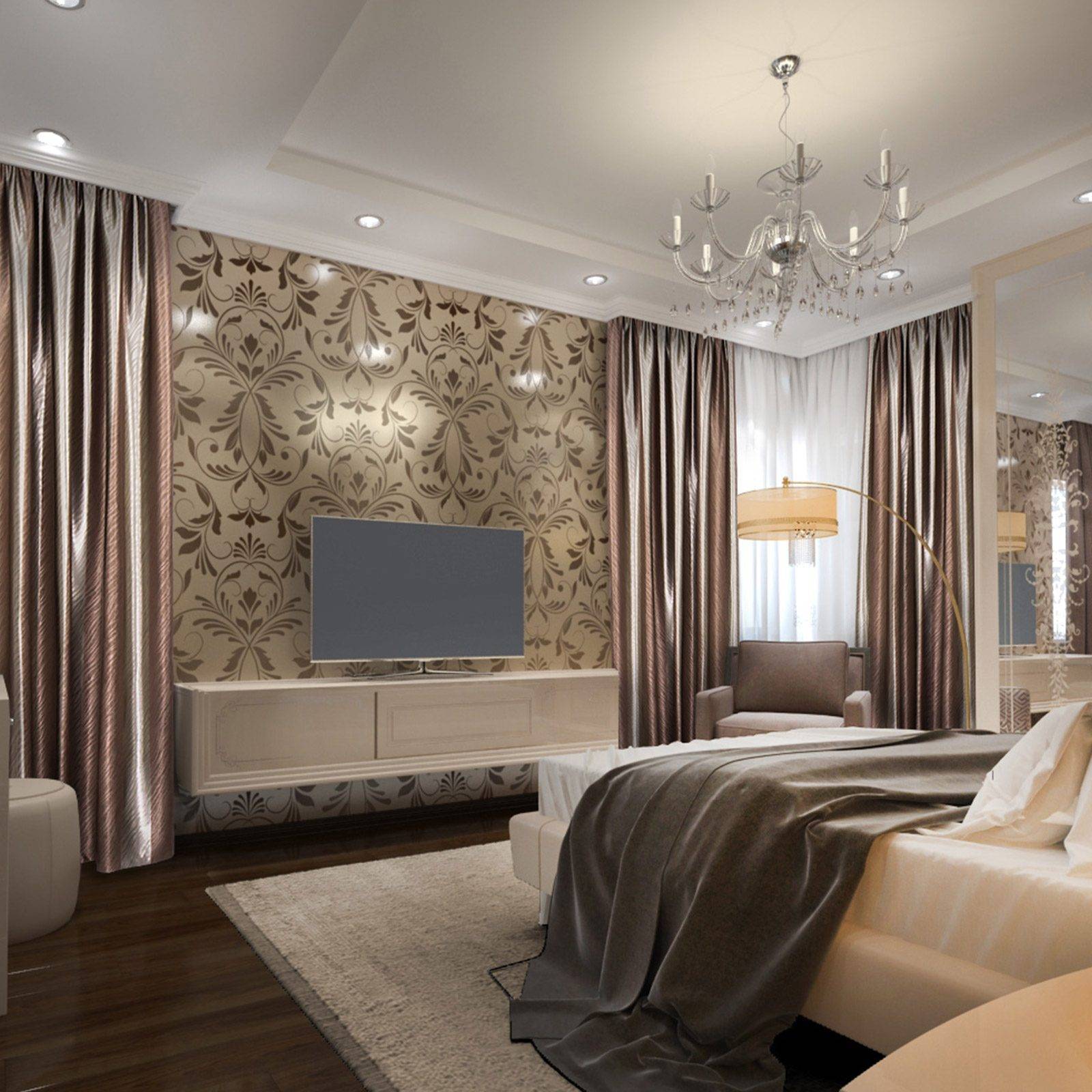 Спальная с повешенными занавесками коричневого цвета будет смотреться идеально и роскошно. Данное решение придаст комнате интимности и спокойствия.