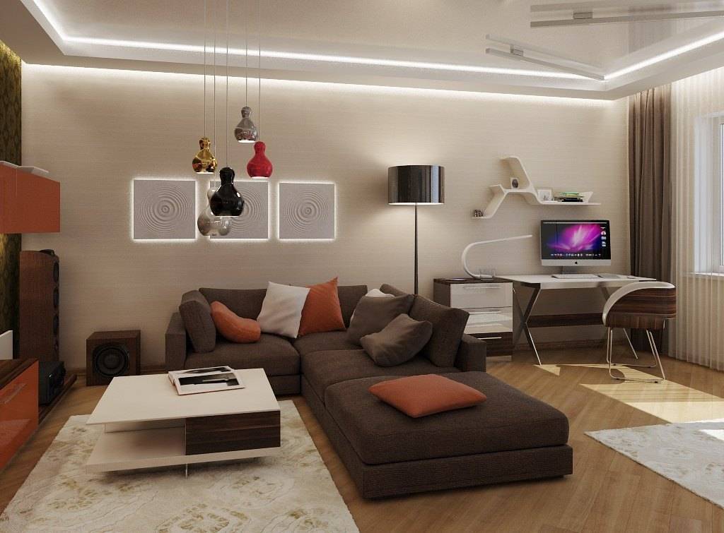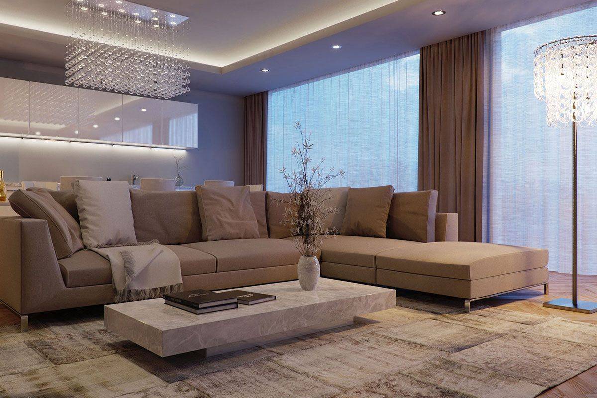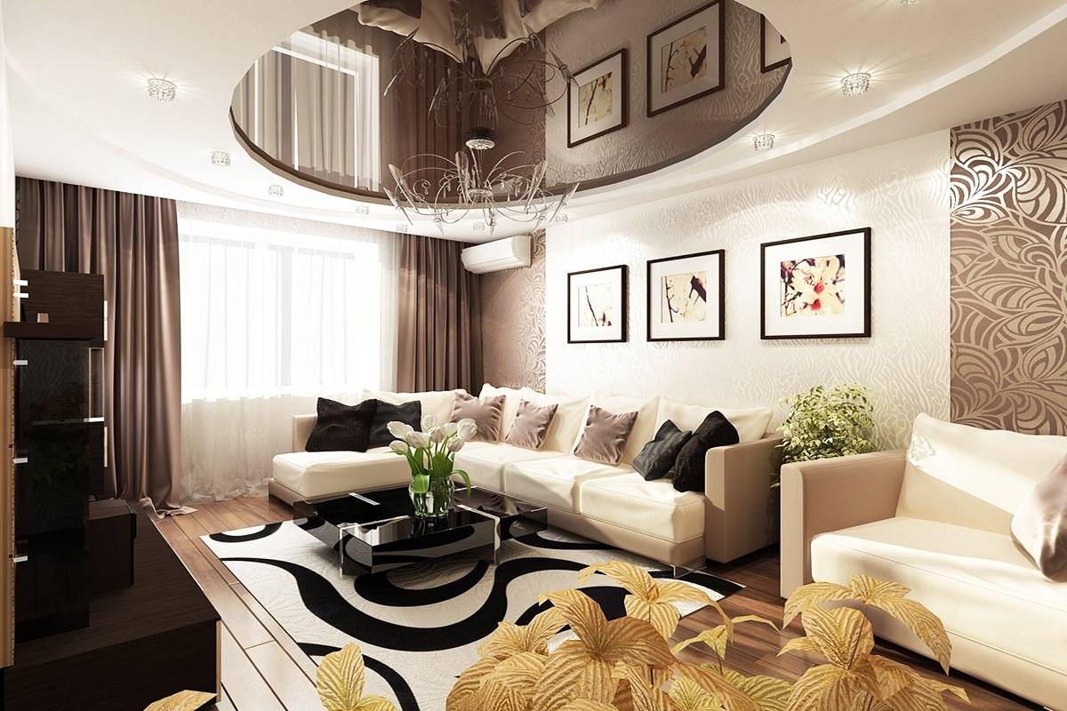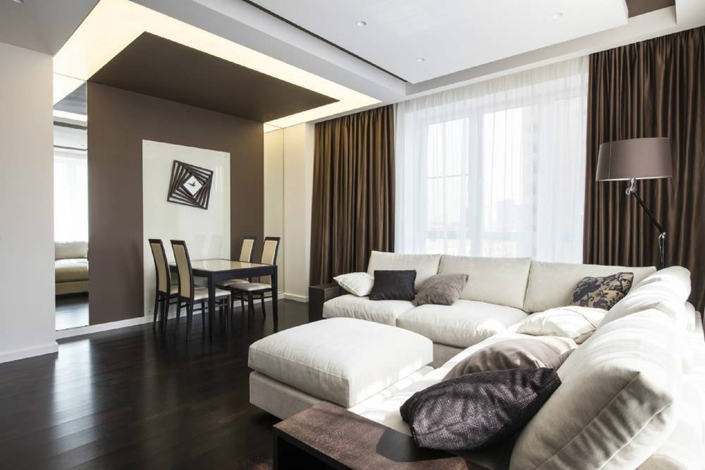 Чтобы сделать коричнево-бежевую гостиную более просторной, помогают некоторые простые приемы. Вы можете: