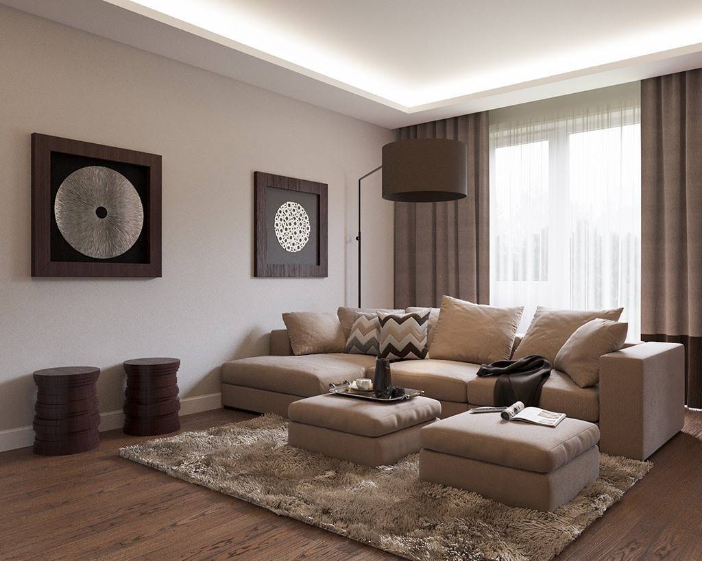 Гостиная коричнево-бежевого цвета выглядит привлекательно и уютно. Стильный дизайн стен и потолка в сочетании с мохнатым ковром и аксессуарами для дома в акцентных цветах завершают образ современной и в то же время комфортной жилой зоны. Позвольте себе вдохновиться примерами дизайна, возможно, вы найдете тот, который вам понравится. Бежевый и коричневый прекрасно сочетаются друг с другом. Но для того, чтобы гостиная была по-настоящему стильной, нужно придерживаться основных принципов: