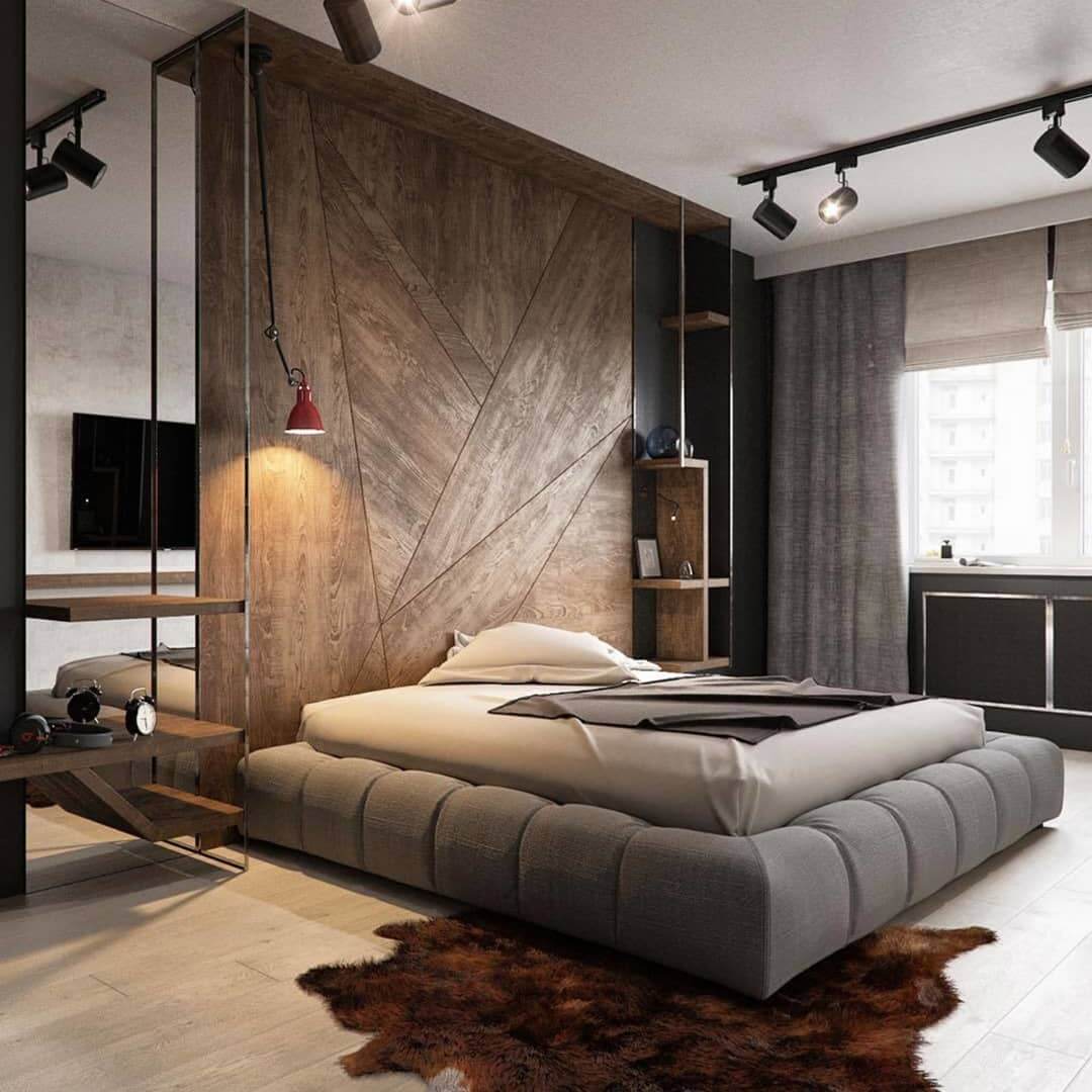 Древесная фактура в дизайне спальни.