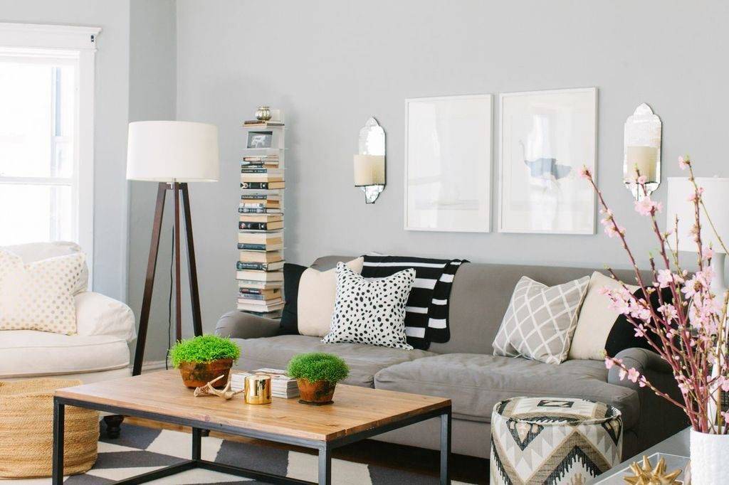 Гостиную с серым диваном можно встретить практически в любом стиле: