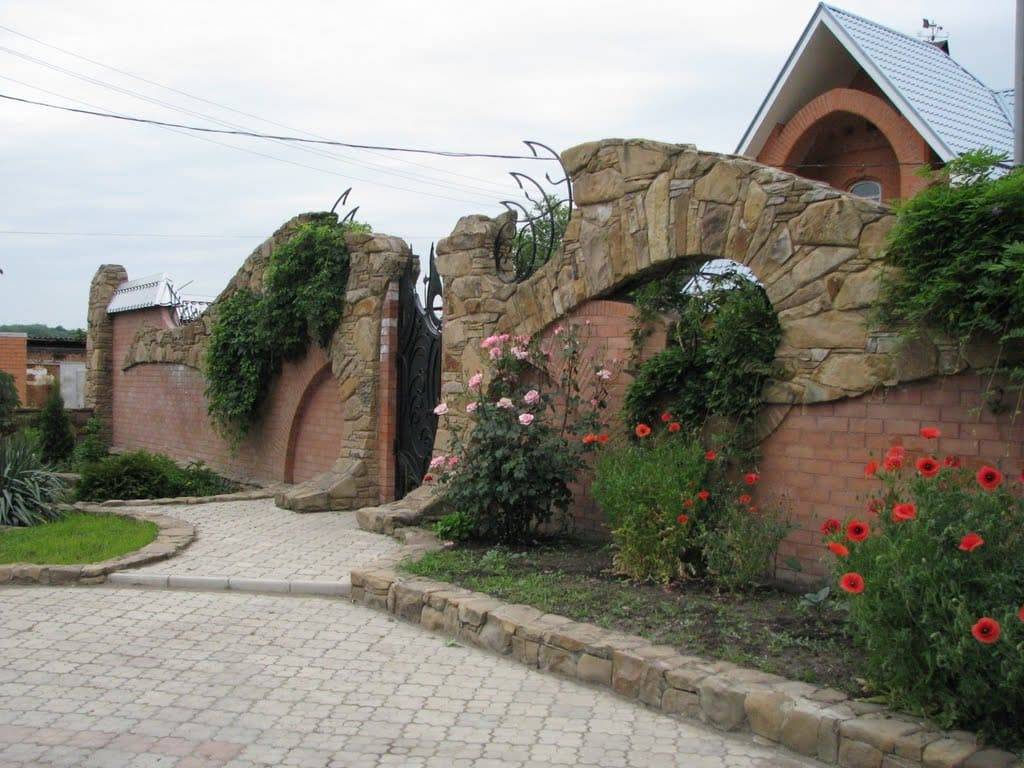Крепкий и надёжный вариант, но не из дешёвых, ведь ему потребуется фундамент. Впрочем, если у вас остался кирпич после строительства дома, то вы нашли ваш идеальный вариант забора.