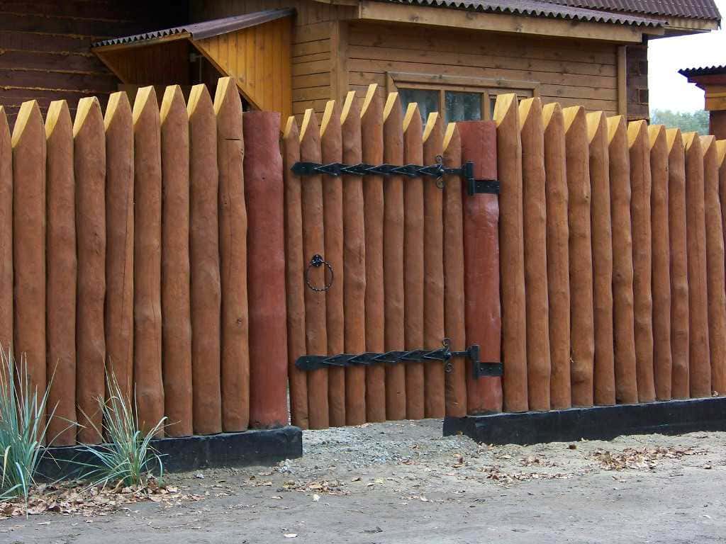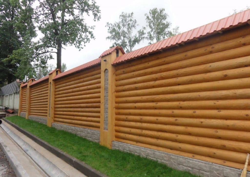 А вот хозяева, решившиеся на постройку тяжёлых ограждений, применяют дерево, скорее всего, чисто с эстетического соображения, так как бетонный фундамент, плюс столбы из камня или кирпича сведут на нет какую угодно экономию.