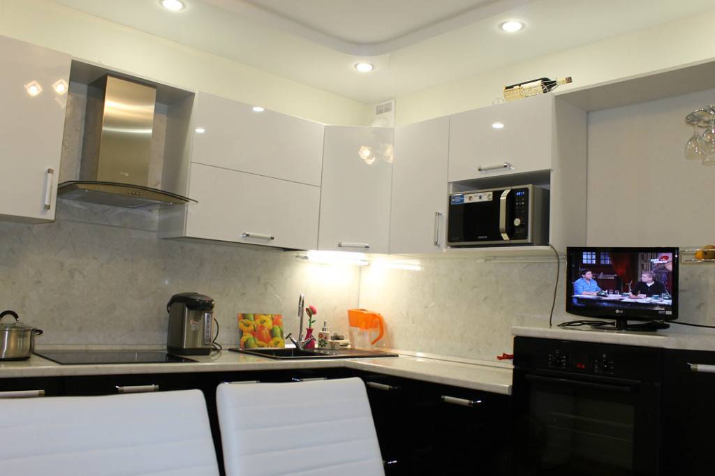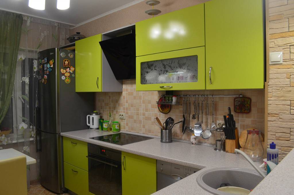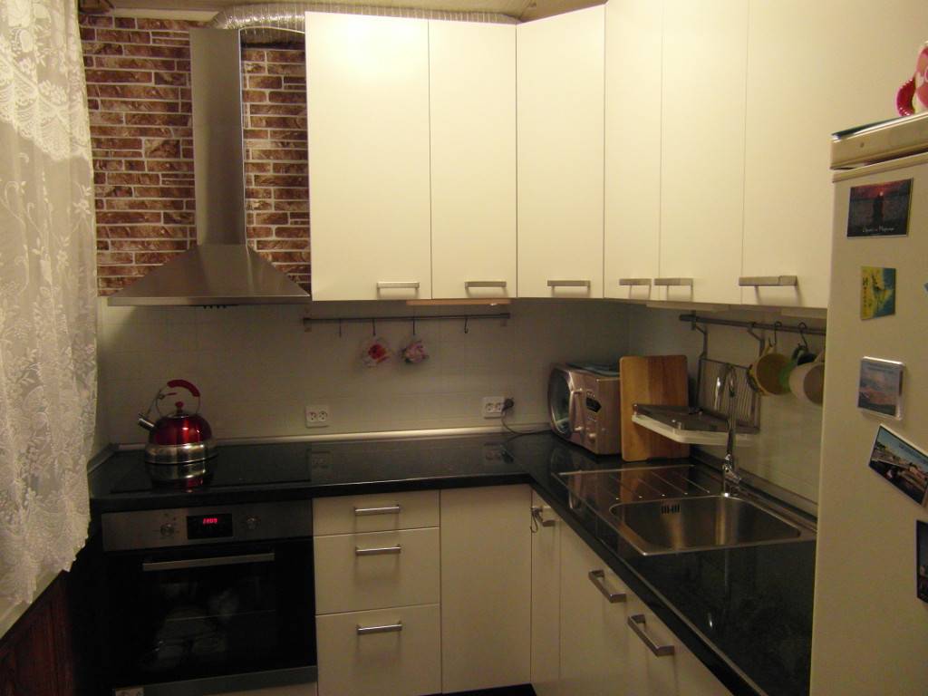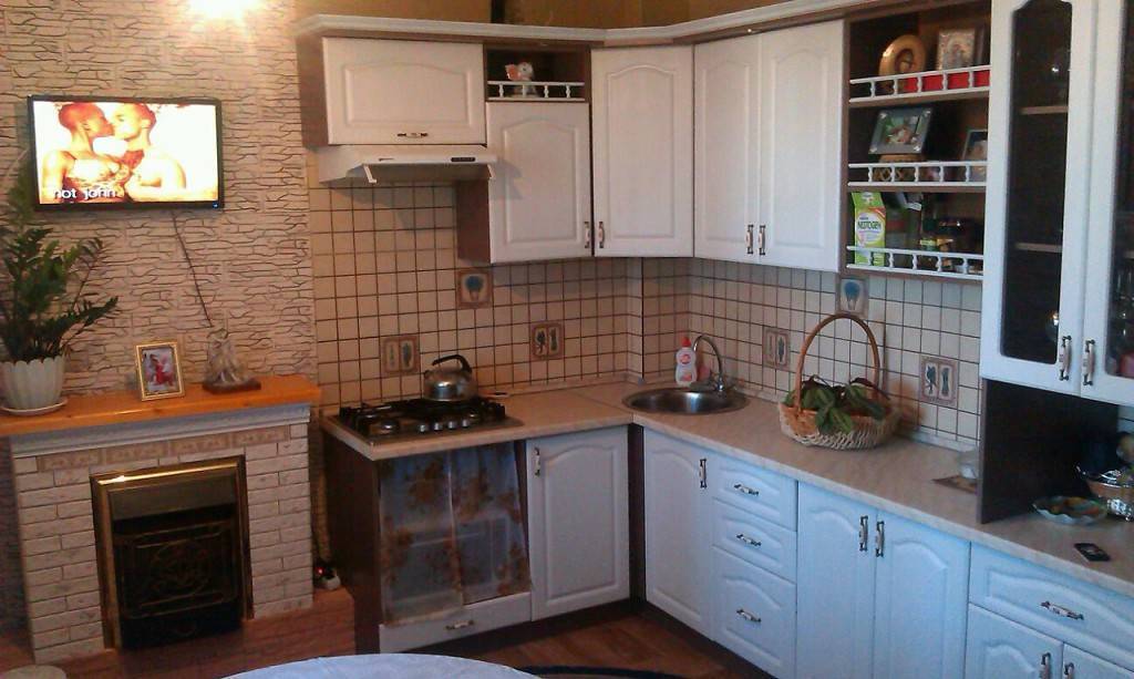 - Интересное решение для обустройства кухни в маленькой квартире.