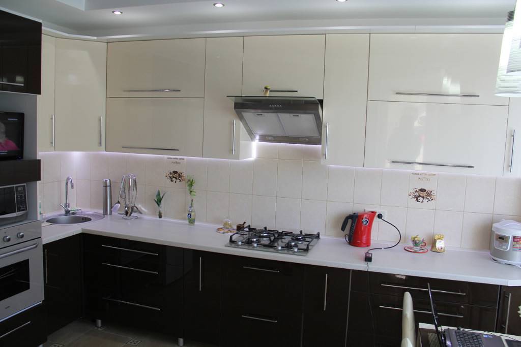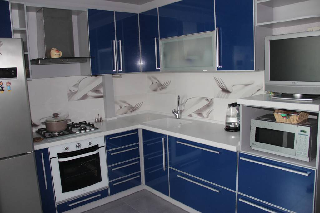 Глянцевые фасады эффектно смотрятся, зрительно увеличивают пространство, хорошо отражают цвет.