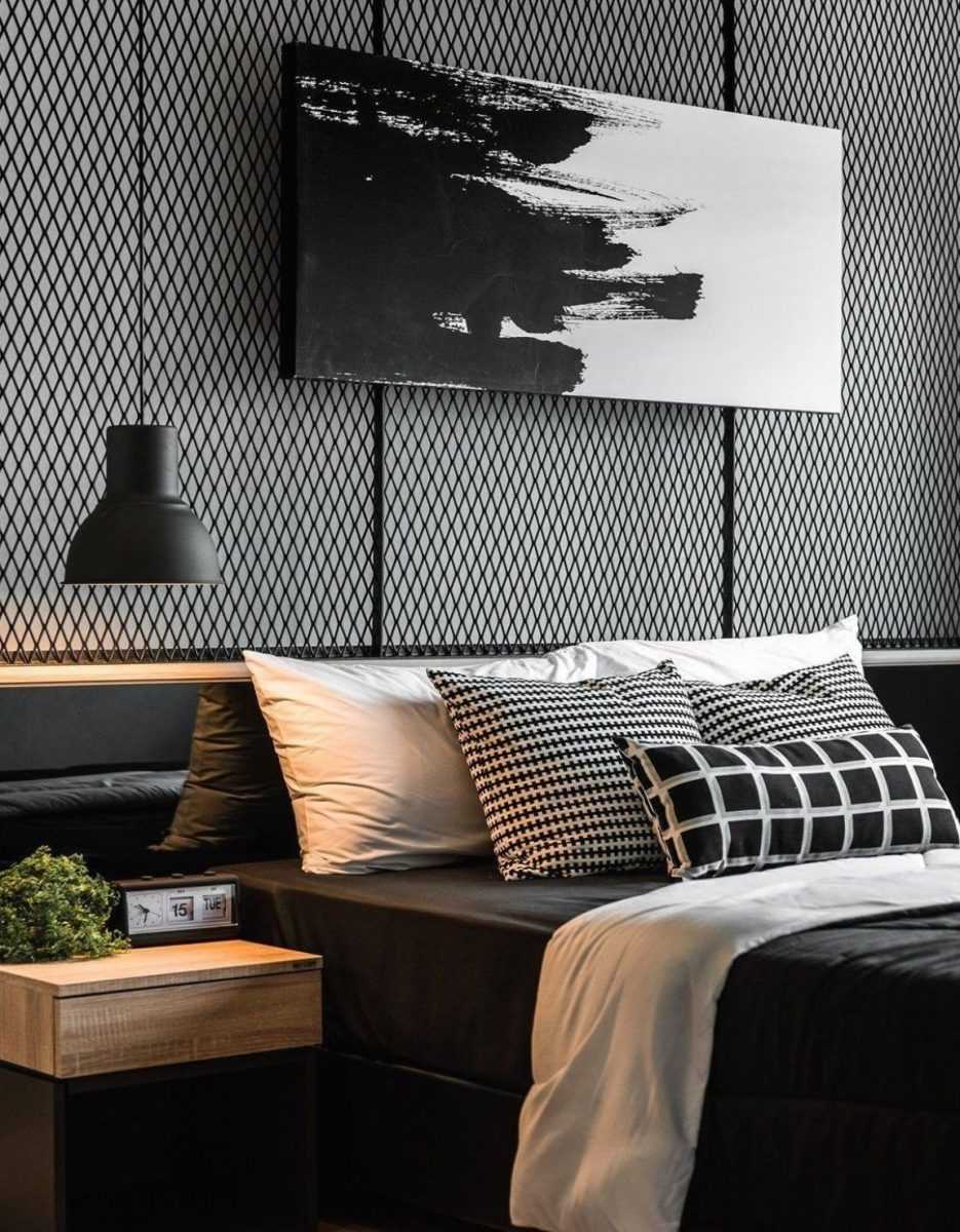 Для разнообразия атмосферы помещения стоит акцентировать внимание на одной из стен, лучше за изголовьем спального места.
