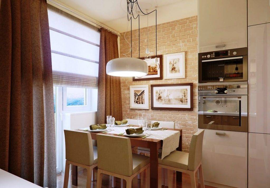 Для классической кухни-гостиной или кухни, совмещенной со столовой, можно выбрать длинные гардины.