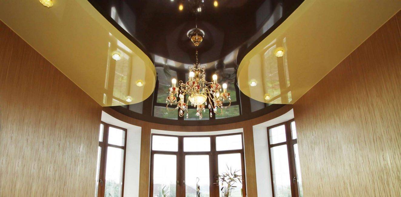 Особую эффектность могут иметь натяжные потолки насыщенных глубоких оттенков, например, синего или темно-коричневого. Такой прием позволяет получить изысканный и необычный вид – ведь привычен светлый цвет. В темных тонах интерьер приобретает ноты загадочности и таинственности.