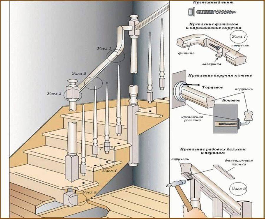 А теперь рассмотрим детальнее монтаж ограждений лестниц из дерева своими руками.