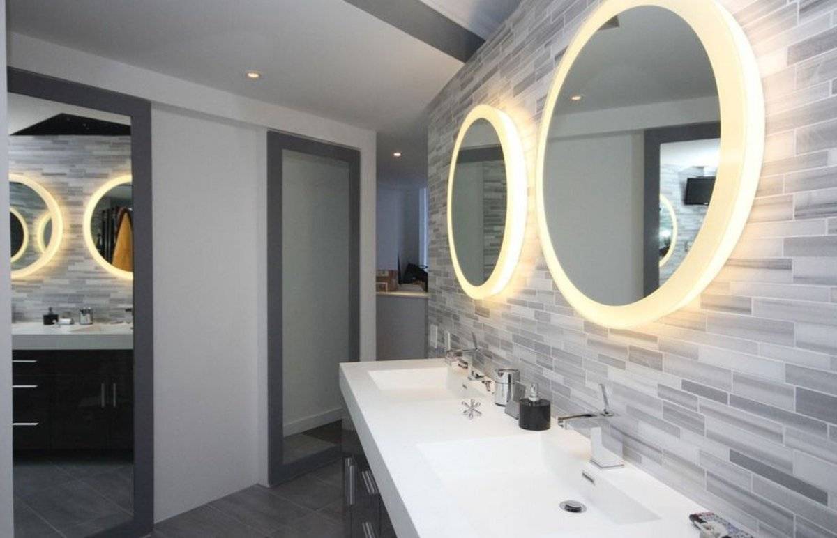 Зеркало в ванной должно иметь отступ от раковины на 20-40 см. Такое расположение обеспечит ему надежную защиту от брызг, и в то же время будет способствовать комфортному использованию. От пола следует отступить расстояние, равное 1м 20 см. Это позволит обеспечить безопасность маленьких детей. Верхний край должен превышать рост самого высокого домочадца на пару сантиметров. Учитывайте эти правила при выборе зеркала. Они помогут вам определиться с размером полотна.