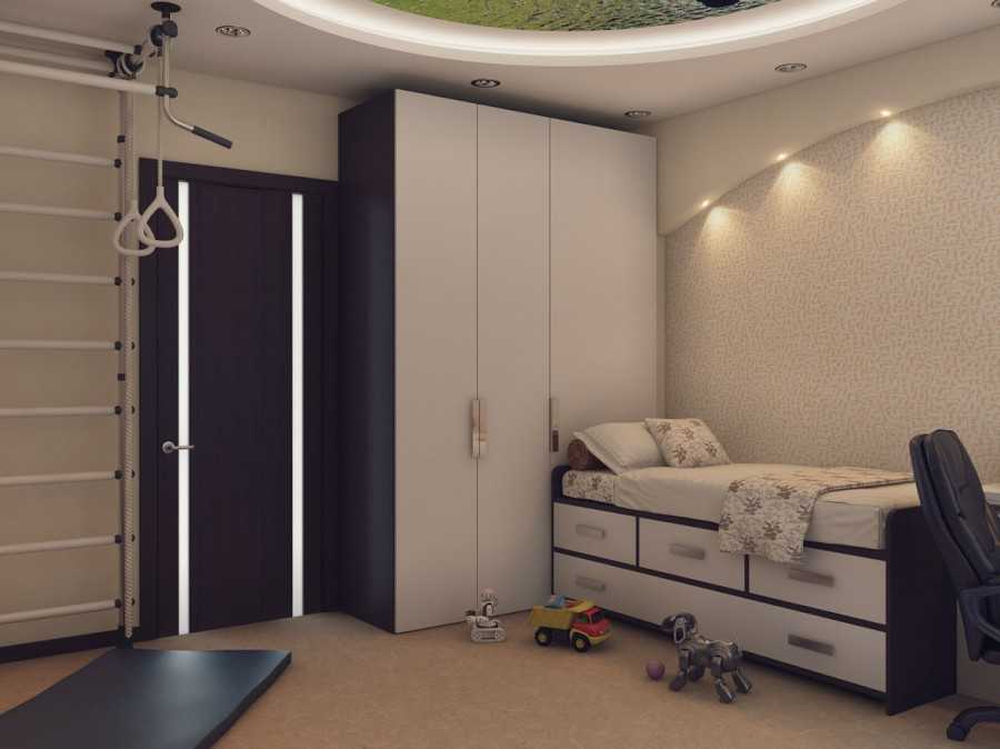 - кресло кровать может пригодиться в детской, особенно если детей двое. В этом случае второе спальное место располагается под ярусной кроватью, там же можно поместить небольшие полки для вещей или компактную стенку для книг.