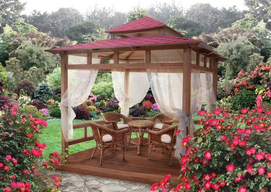Беседка является неотъемлемой частью каждой дачи. В ней можно отдохнуть, хорошо провести время, а так же она отлично выполняет эстетическую функцию, украшая участок. Их также применяют при оформлении дворовых территорий, парков отдыха и других общественных мест.