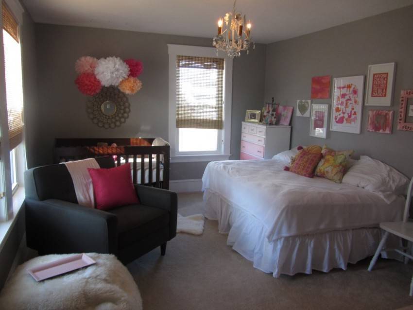 Располагая в спальной комнате кроватку, помните о своем комфорте. Пространство должно быть организовано рационально, ведь и вам должно быть удобно, и малышу.
