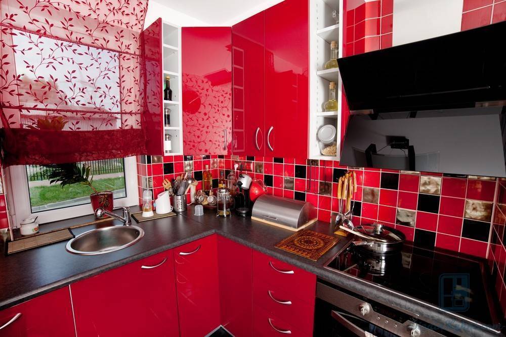 Любителям ярких и красочных интерьеров рекомендуем обратить внимание на красный цвет. На кухне он не слишком агрессивен, зато отлично бодрит, стимулирует аппетит и придает атмосферу торжественности обычным семейным ужинам