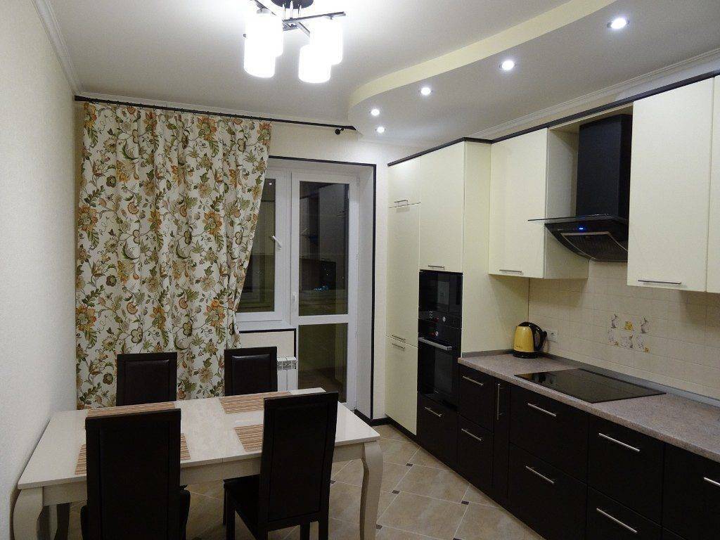 При прямой планировке кухонный гарнитур с техникой лучше разместить вдоль длинной стены. Использование стоек-стеллажей, выдвигающихся столешниц, вращающихся, трансформирующихся элементов кухонного гарнитура поможет сберечь пространство. Обеденный стол может быть как классическим, так и в виде барной стойки. Кроме того, вместо стульев можно поставить маленький диван.