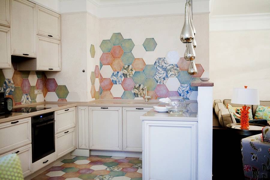 Таким образом, вы легко сразу определите расположение кухонного гарнитура с плитой и холодильником.