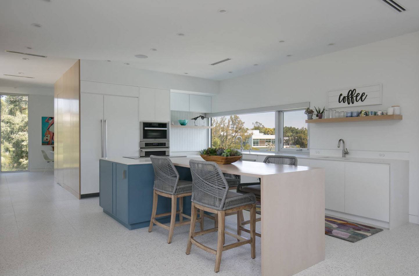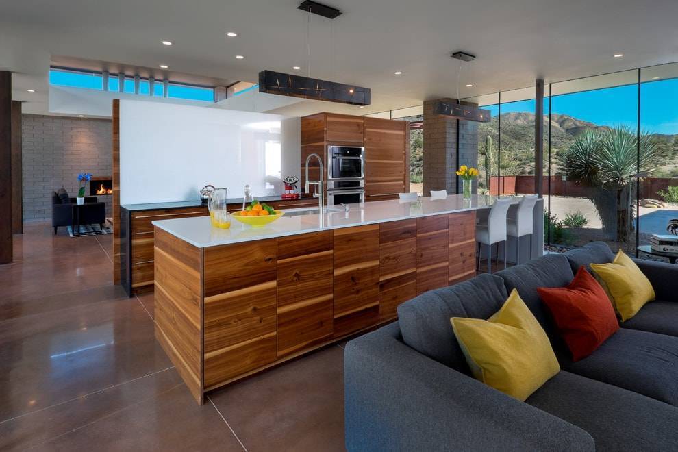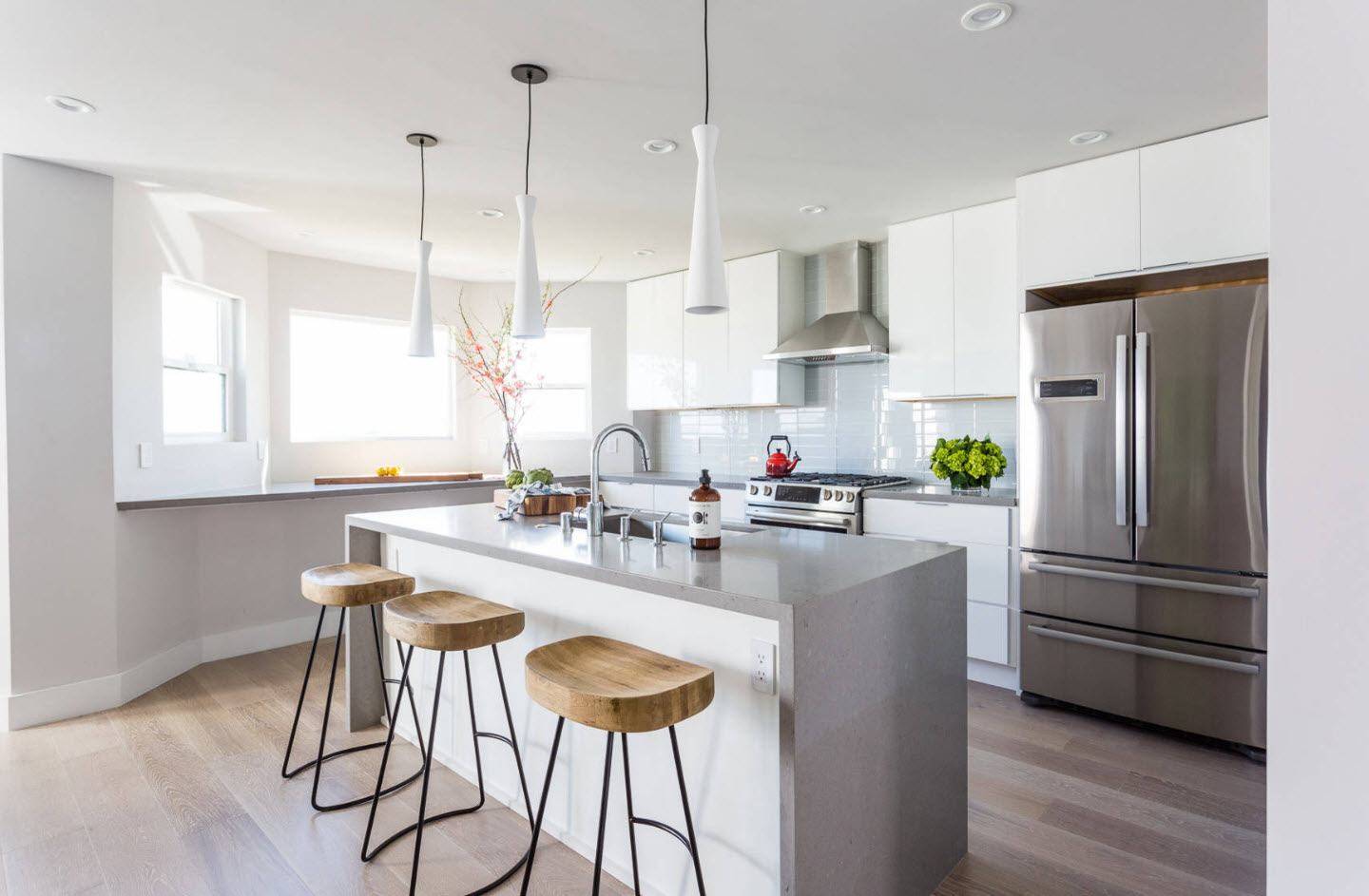 Все, что вам нужно на кухне (тарелки, раковина, шкафы, столешница), может поместиться на большом многофункциональном острове. Это привлекательное решение, подходящее для квартир и небольших домов. Оно лучше подходит для современной жизни, чем серия шкафов и столешниц с одной стеной в открытой комнате. Кроме того, остров может визуально расширить площадь. Кухня незаметно превращается в столовую, обеспечивая жителям и гостям плавный переход от приготовления салатов и резки жаркого до поедания аппетитных блюд.