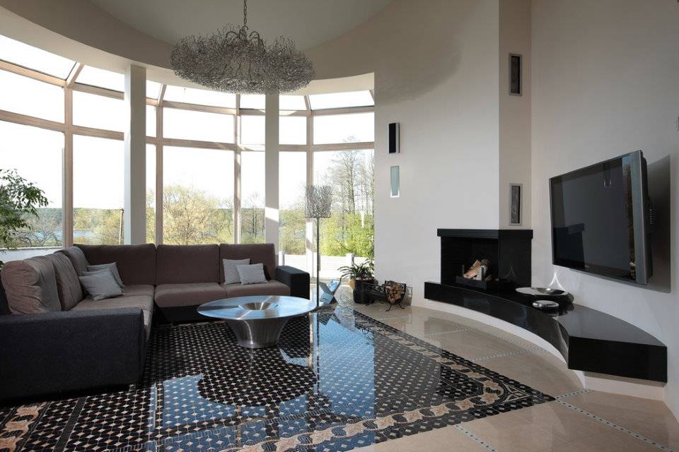 Мраморный пол в эркере шикарной гостиной французского стиля