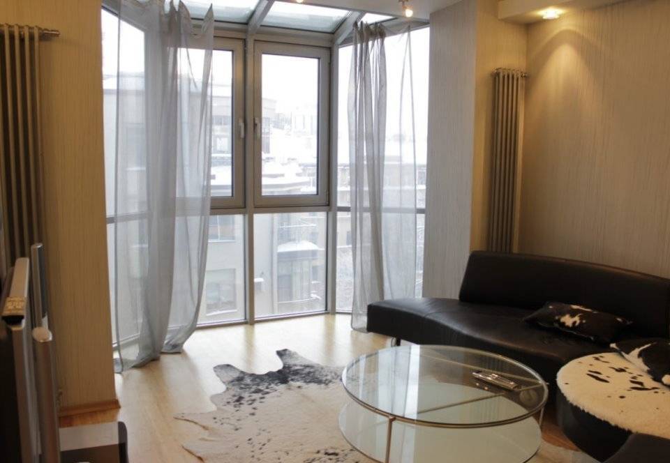 Для современного оформления гостиной с эркером фото характерны открытые окна без штор и жалюзи, лаконичная мебель, нейтральная цветовая гамма, минимум аксессуаров, функциональность пространства.