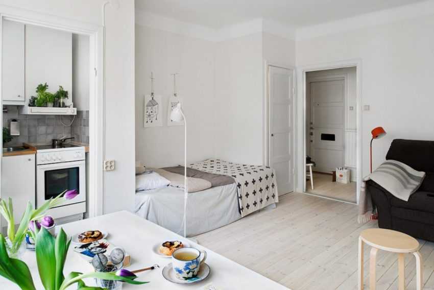 Для студийного помещения важно грамотно разделить места отдыха, приёма и приготовления пищи