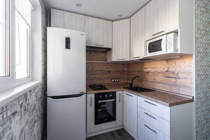 Но если вы решили, что кухня в хрущевке с холодильником непременно должна быть, то задумайтесь о выборе компактной и не высокой модели, на которой, в случае необходимости, можно разместить микроволновую печь или что-нибудь еще.