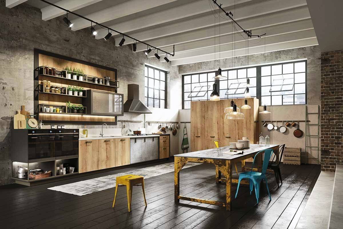 Установка освещения в кухне, выполненной в индустриальном стиле