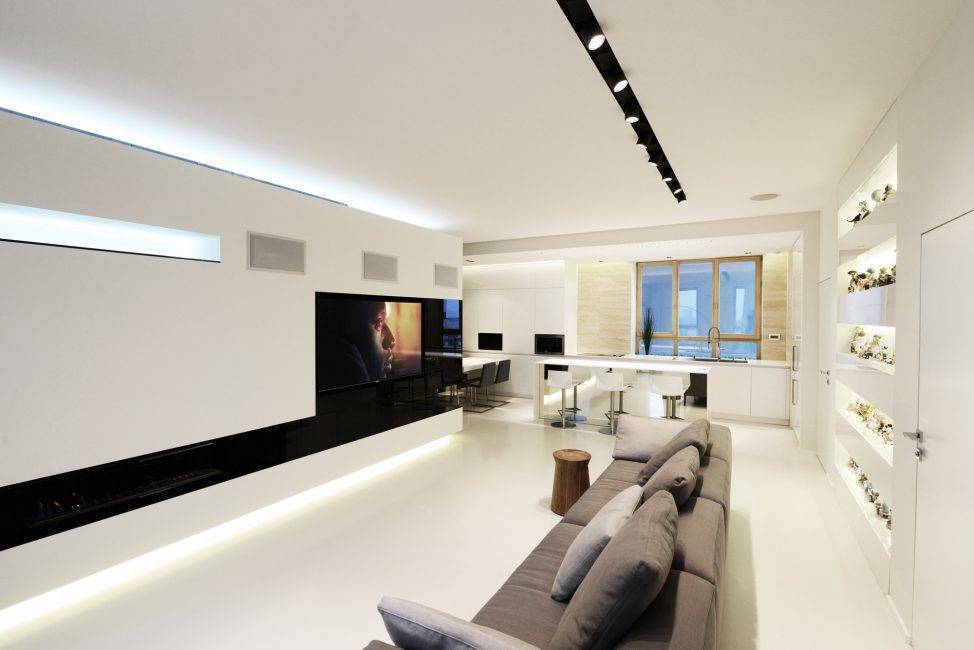 Основным украшением минимализма становятся игра цвета и профессионально выполненное световое решение.