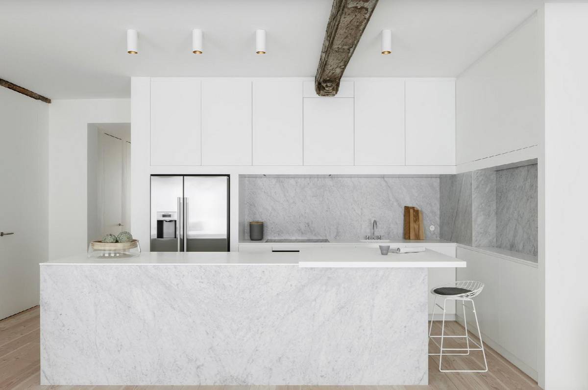 2.Аристократический белый цвет – лучший специалист по увеличению пространства, но для кухни он может оказаться непрактичным.