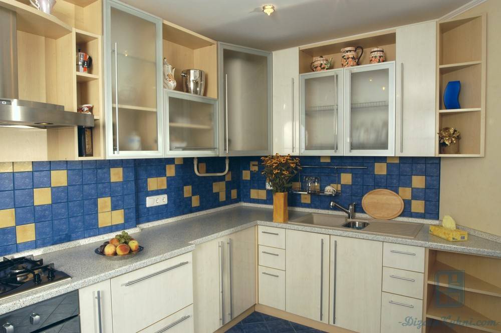 - Фартук кухни также можно оформить керамической плиткой или использовать готовые МДФ-панели, покрытые бумажно-слоистым пластиком.