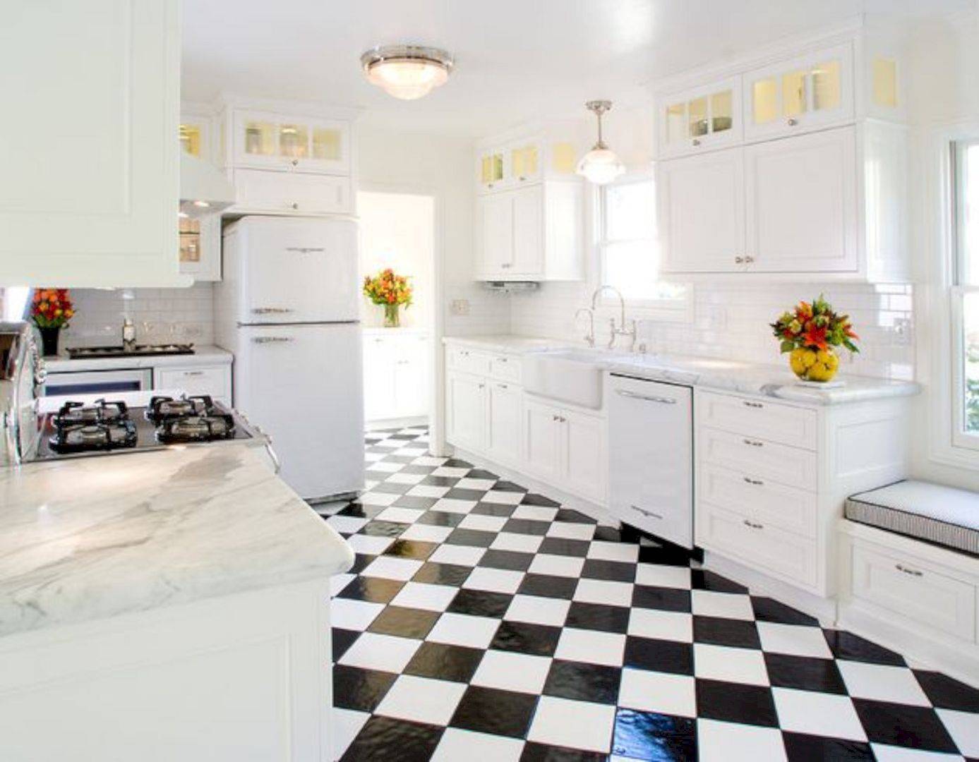 Керамическая плитка для напольного покрытия уместна для ретро кухни.