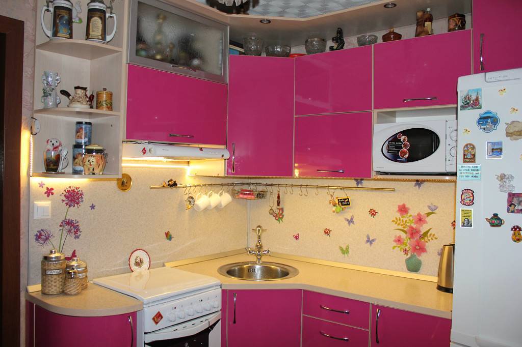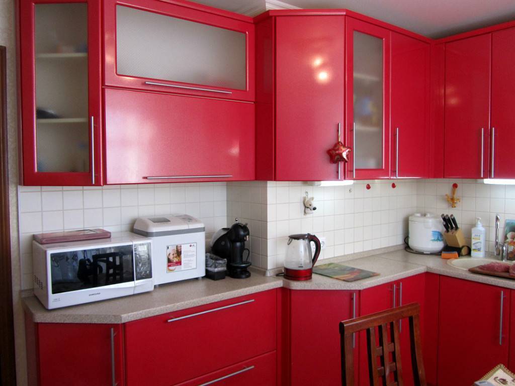 Совет! Для маленькой угловой кухни из пластика яркие фасады выбирать не стоит, так как насыщенные цвета будут визуально уменьшать помещение.
