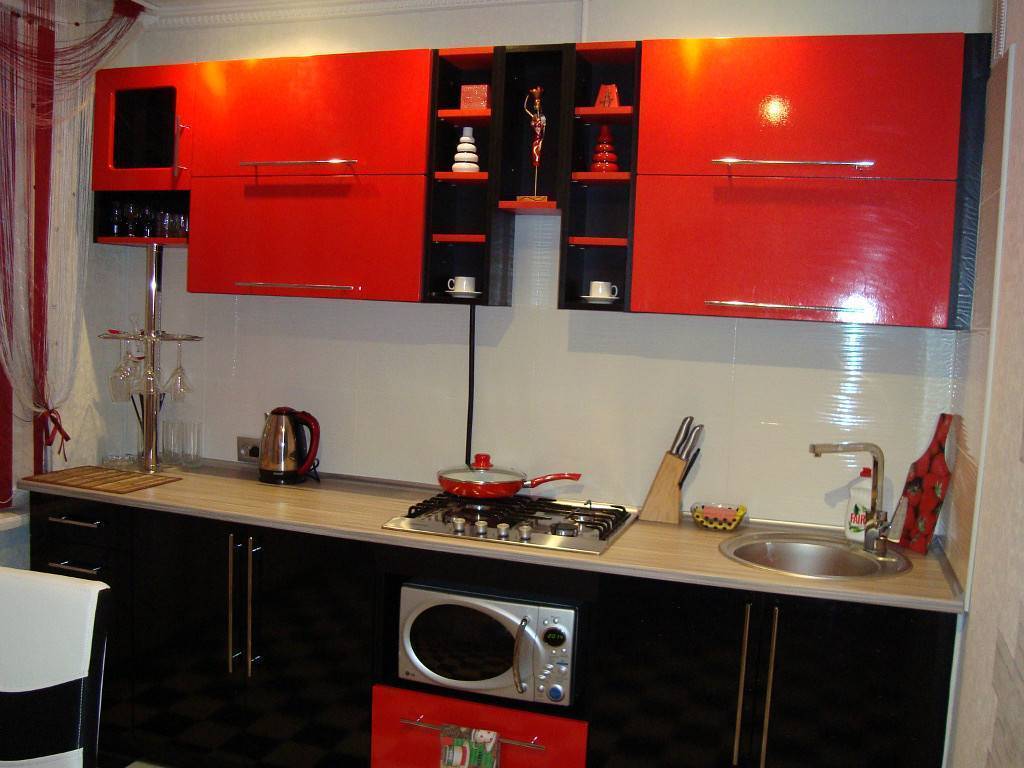Поэтому комбинации красного с любыми другими цветами считаются дизайнерами неуместными в подобном контексте. Кухни, выполненные из красного пластика, смогут выгодно дополнить собой стиль модерн, а также хай-тек.