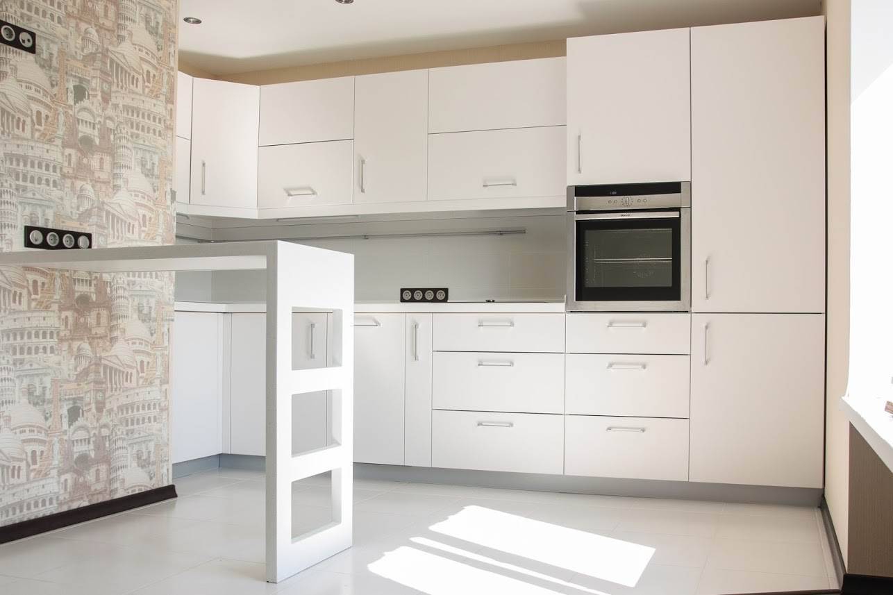 Белая кухня с барной стойкой