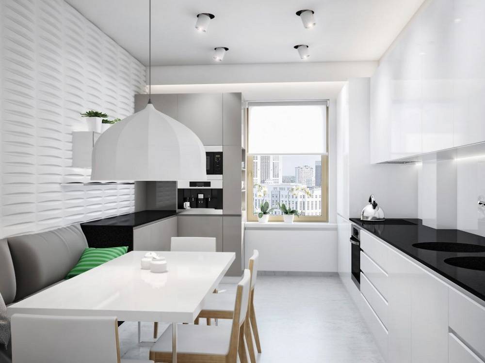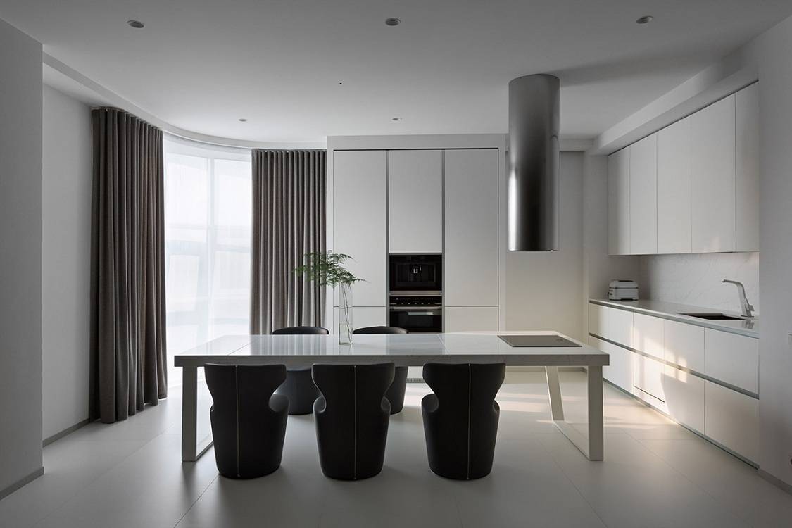 Белый цвет – король минималистичных интерьеров. Но, согласитесь, исключительно белая кухня выглядит несколько скучновато, хоть и кажется большей.
