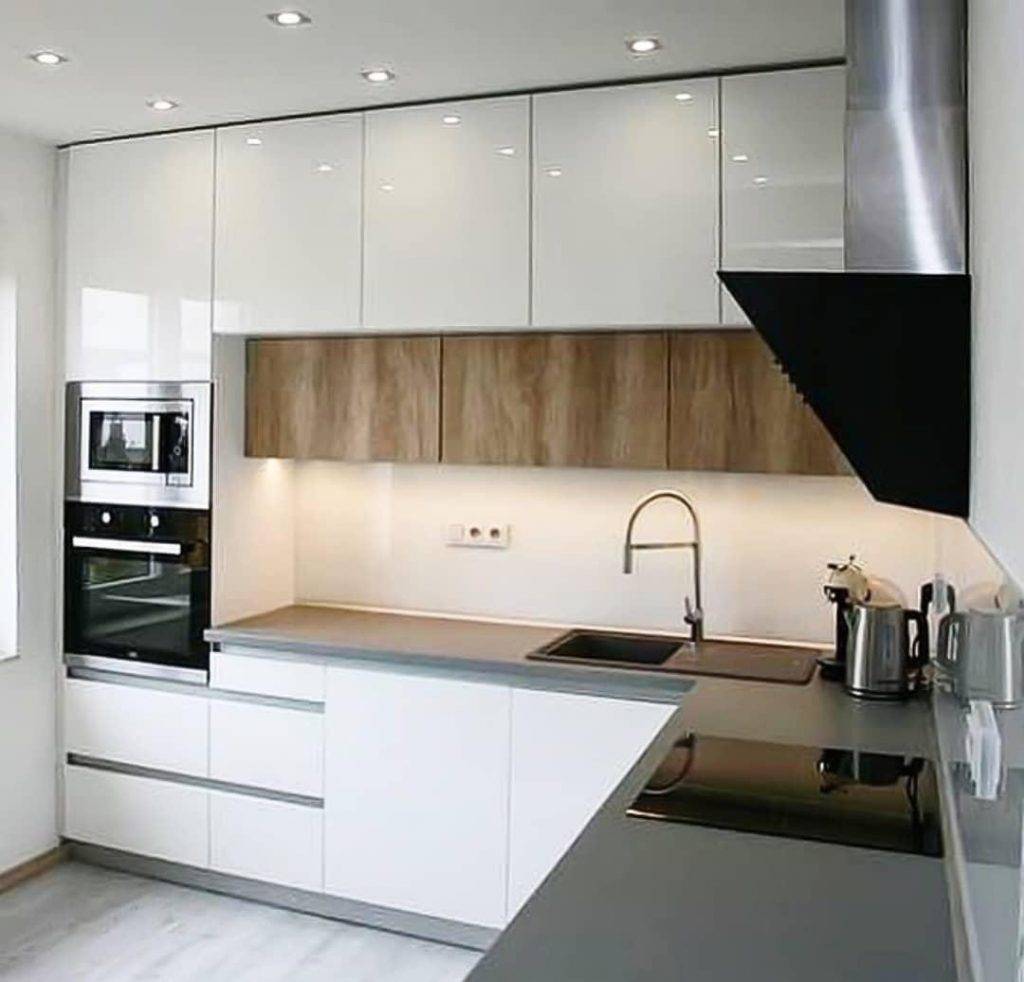 Белый цвет – король минималистичных интерьеров. Но, согласитесь, исключительно белая кухня выглядит несколько скучновато, хоть и кажется большей.