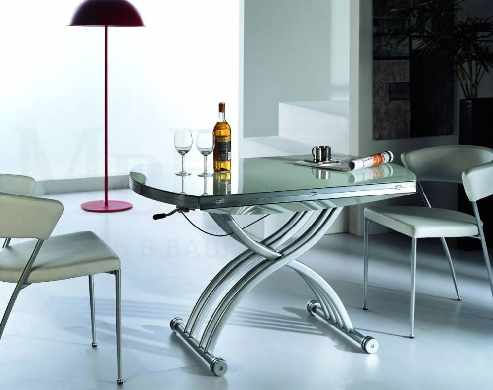 Такая конструкция, при необходимости, превращается в небольшой журнальный столик, сервировочную или кофейную модель. Если в доме появляются гости, конструкция быстро становится обычным обеденным столом.