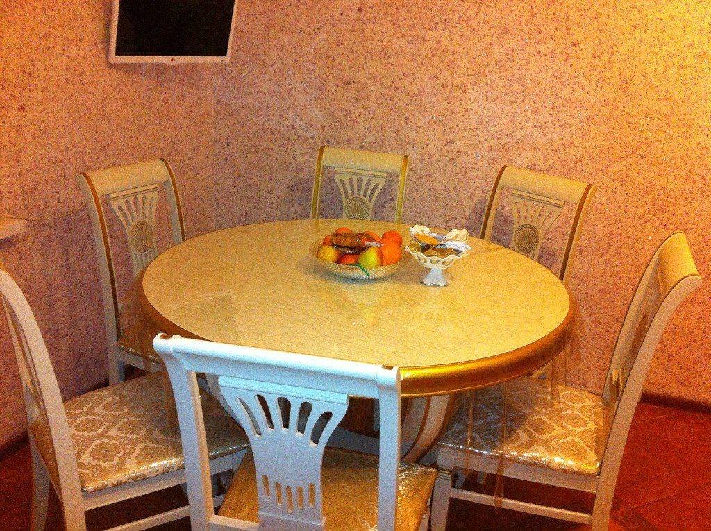 В разобранном виде эта мебель превращается в полноценный овальный стол, за которым смогут разместиться гости и члены семьи. В этом виде его можно применять для праздничных трапез с большим количеством человек. Но стоит учитывать, что при разборе этот предмет превращается в большой стол, который будет занимать большую часть кухни.