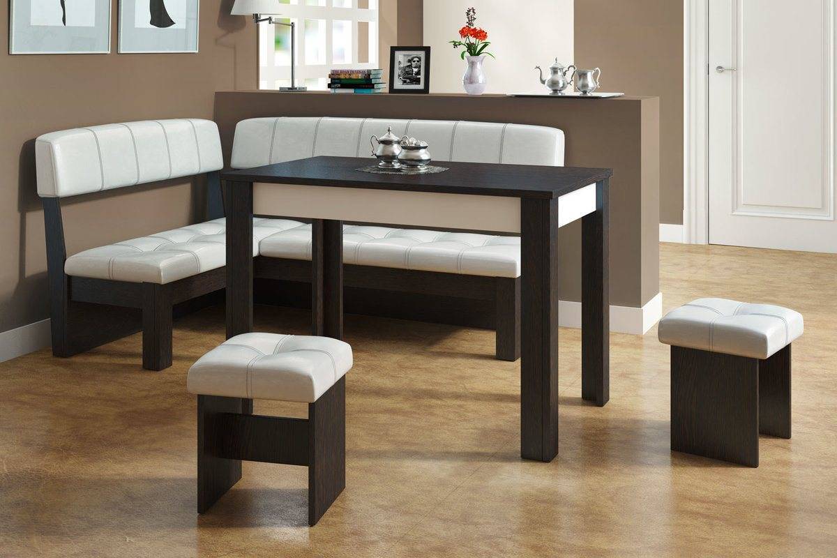 В кухнях со скромной площадью сложно разместиться без складной мебели. Надо подбирать модель, которая в собранном виде создаст удобные места, чтобы 2-3 человека комфортно отобедали.