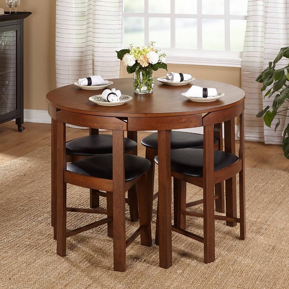 При обустройстве небольшого помещения необходимо учитывать каждый миллиметр пространства, поэтому и мебель должна быть соответствующей, т.е. небольших габаритов. Это касается как размеров стола, так и составляющих ему комплект стульев. В такой ситуации отличным решением также будет трансформирующаяся мебель, которая либо «прячется» в другой мебели, либо при необходимости увеличивается в размерах.
