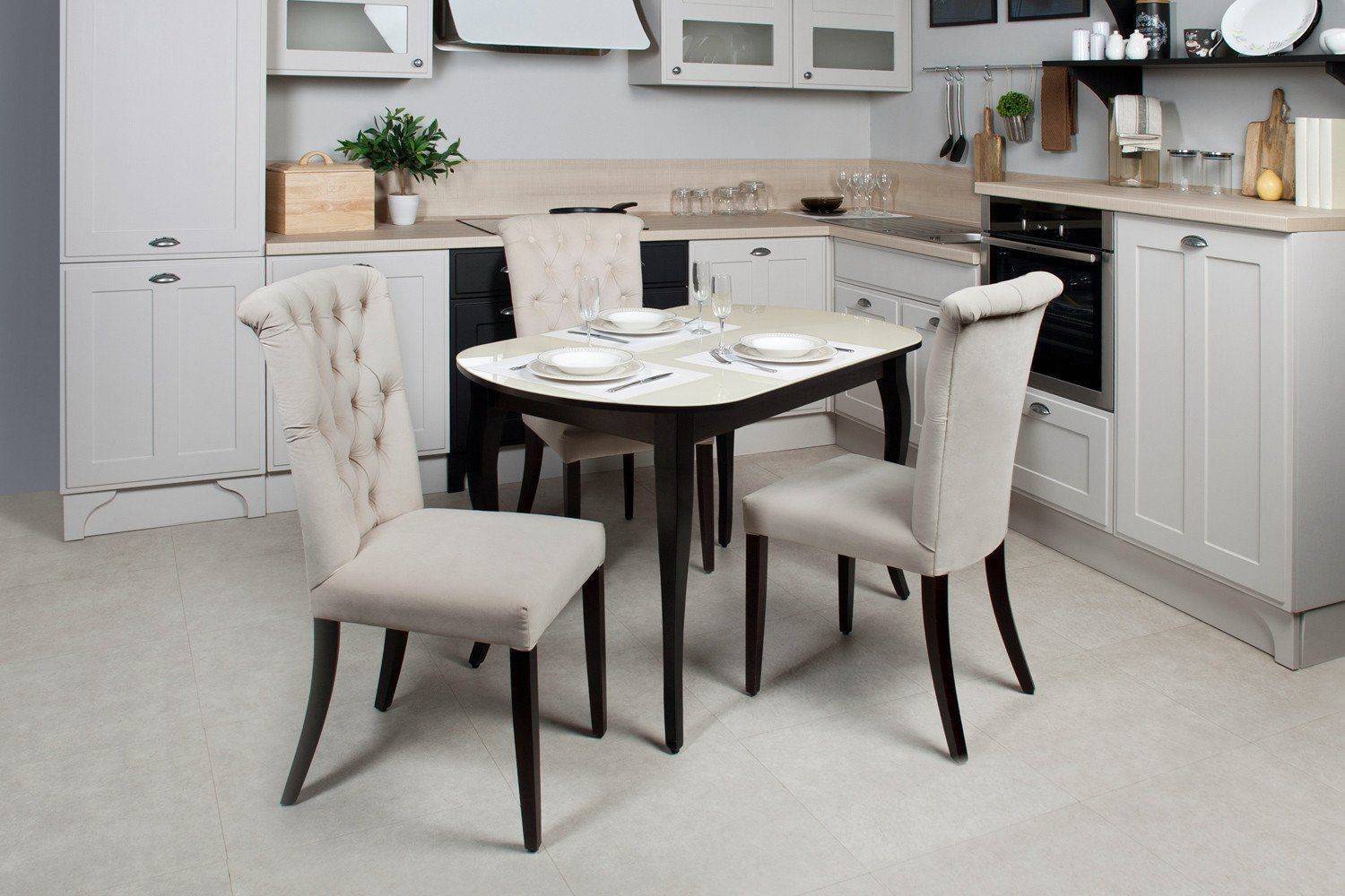 - Стекло — оно элегантно, удобно и просто в уходе. Качественное стекло не царапается. Вопреки внешнему виду, такой вариант стола очень устойчив к поломкам. Тем не менее, он не будет работать на кухне, где нет кухонных столешниц, и на нем будут выполняться все процессы, такие как отбивка мяса, использование бытовой техники.