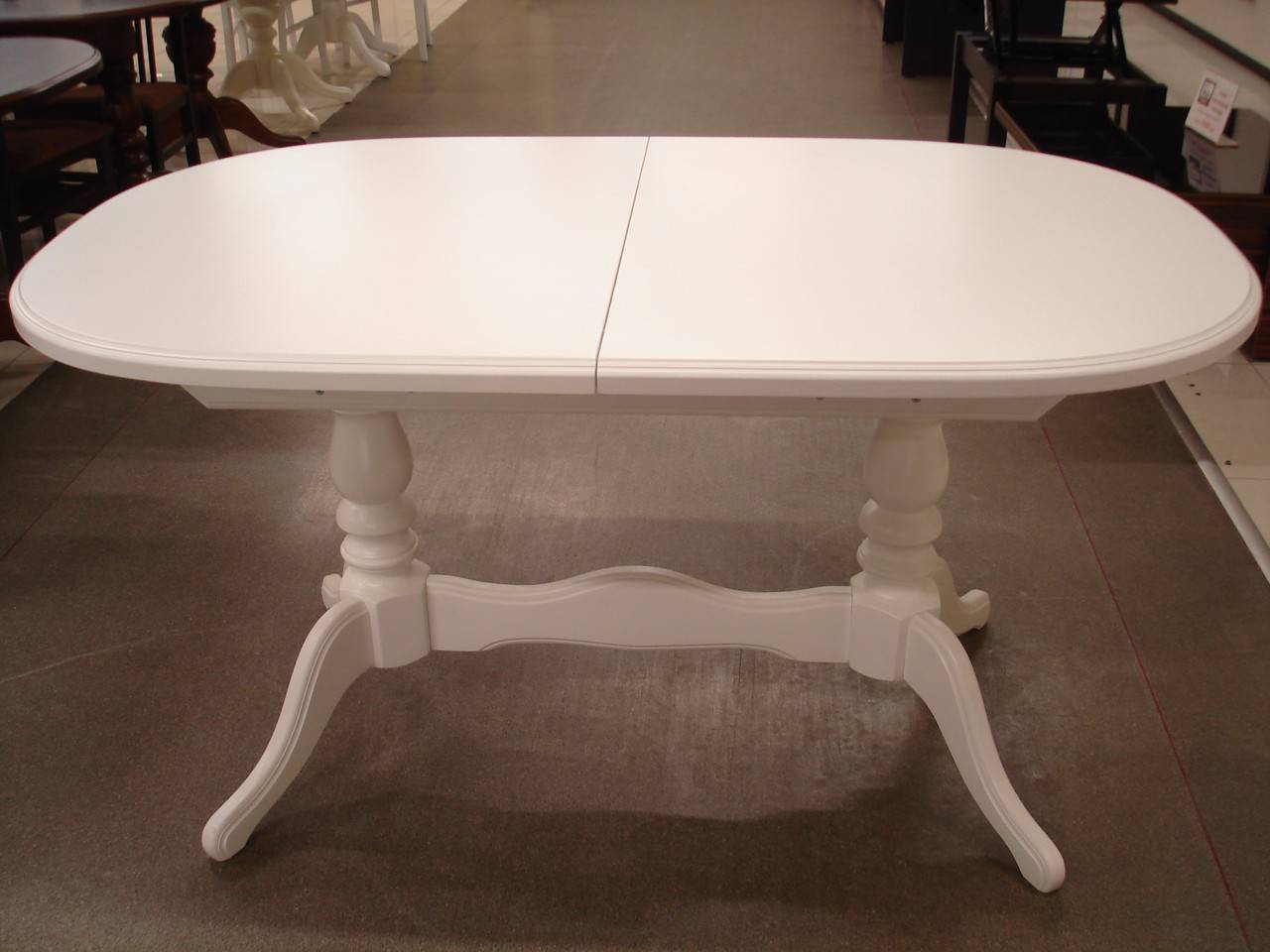 Раздвижные конструкции оснащены овальными столешницами, части которых разъезжаются вправо и влево от цента. Дополнительные элементы хранятся внутри. При необходимости, специальная вставка увеличивают длину рабочей поверхности примерно на 30-40 см.