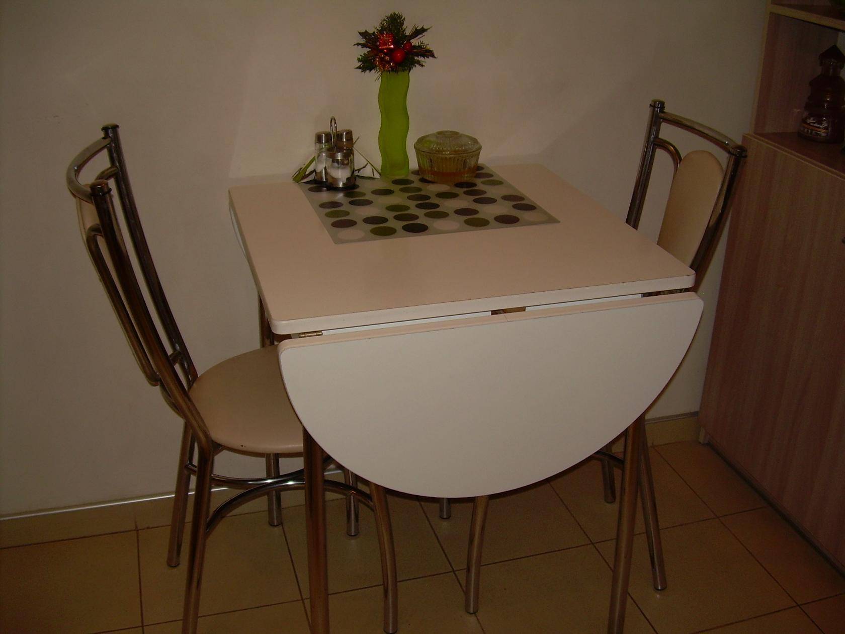 - в сложенном состоянии это стол круглый, который можно поставить посередине кухни. За ним могут разместиться трое или четверо человек;